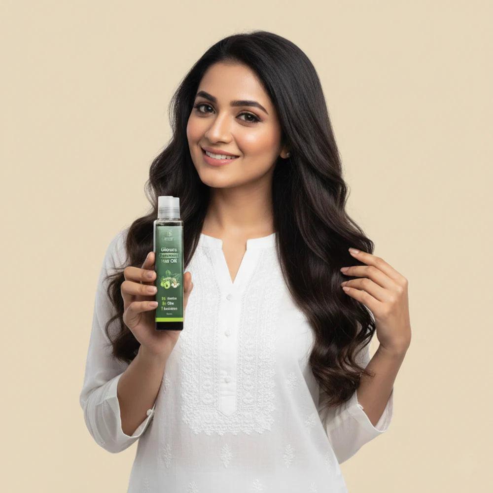 Gloura Ayurvedic Hair Oil is a 100% natural blend of pure, unfiltered oils and powerful Ayurvedic herbs designed to nourish your scalp and strengthen your hair from root to tip. It helps your hair grow longer, thicker and stronger while keeping it soft, shiny and well-moisturized.